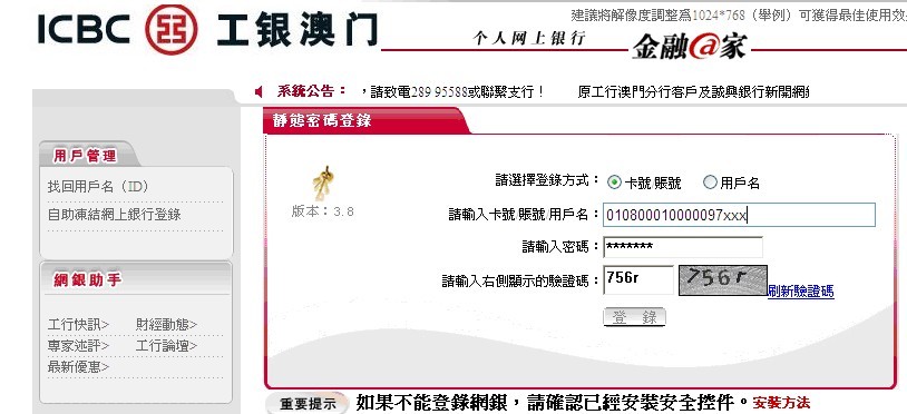 首次登錄我行網上銀行及更新I.E.的客戶需註意以下幾點: