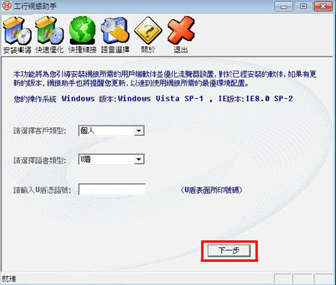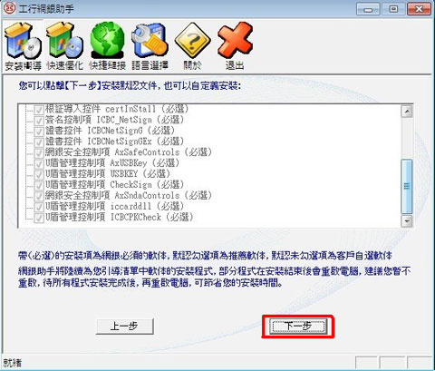 (9)其下載方法可參照以光碟安裝網銀助手的步驟。