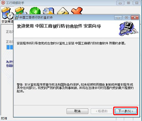 (2)點擊「工銀網銀助手」下載安裝後,具體的安裝方式可參照光碟安裝步驟。