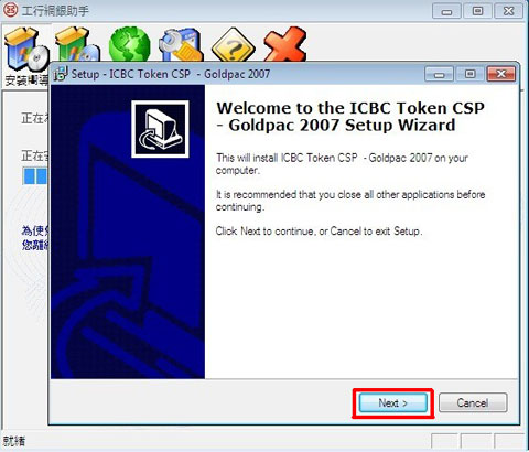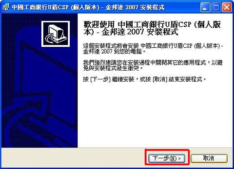 (11)金邦達U盾安裝程式彈出,請按"Next";