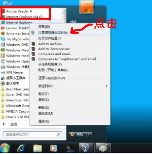 (1) 點擊「開始」,選擇所有程式中“Internet Explorer”,以「管理員身份運行」;