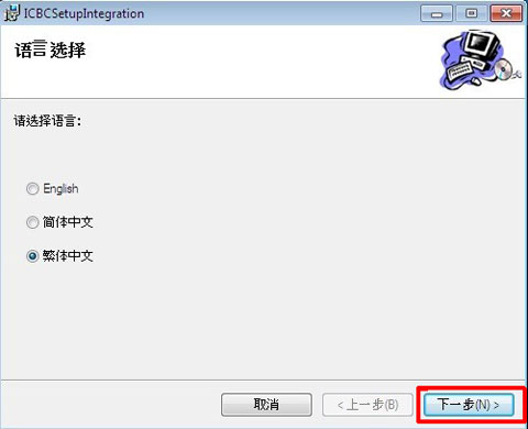 | (1)選擇安裝語言; | (2)提示安裝進行中,請稍候; | (3)點擊桌面上工銀網銀助手。 |