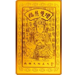 产品采用创新工艺,以2克纯金打造方寸空间,全方位展现文殊菩萨全貌,保佑世人消灾除难、平安快乐。