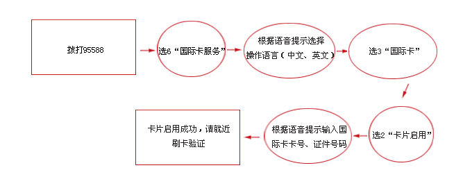 4、使用电话银行进行国际卡启用时,如客户使用非预留电话号码拨打电话银行,系统会要求客户输入预留手机号码,请按照语音提示进行输入。