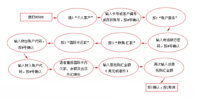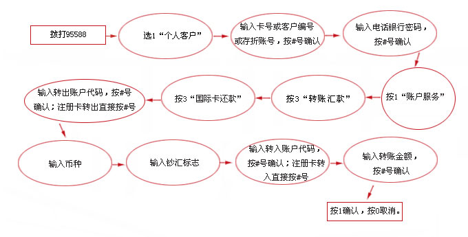 3、使用电话银行进行国际卡购汇还款时,转出账户支持信用卡、灵通卡、理财金卡、e时代卡、活期账户;转入账户只支持国际卡。