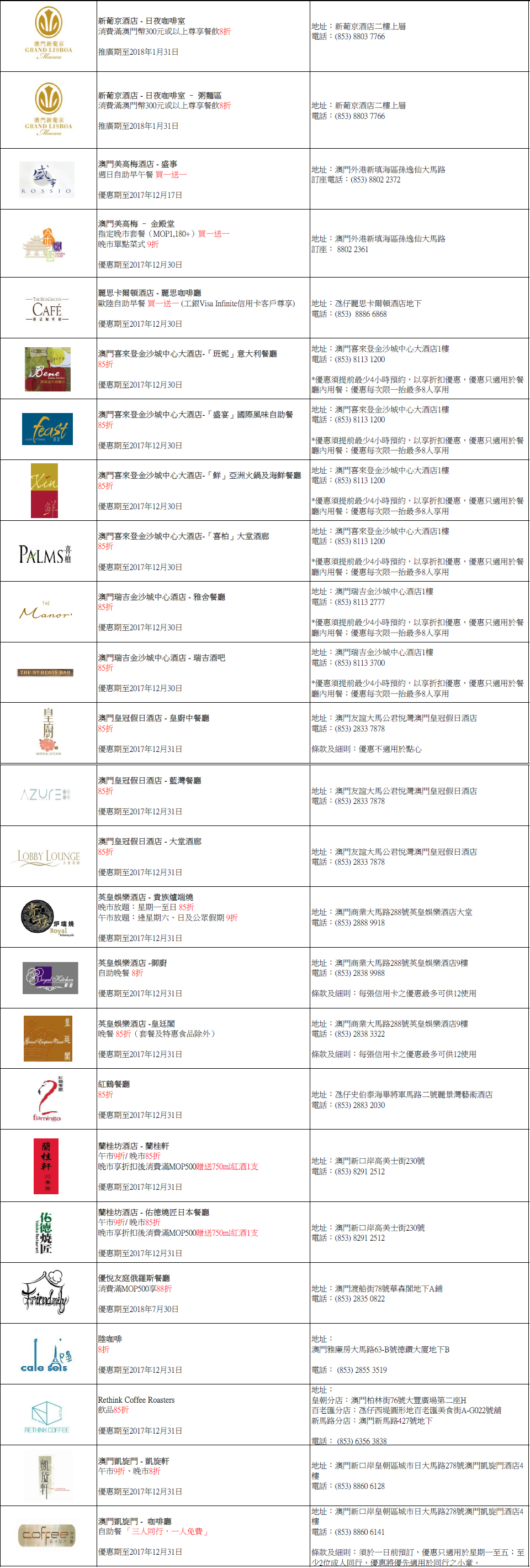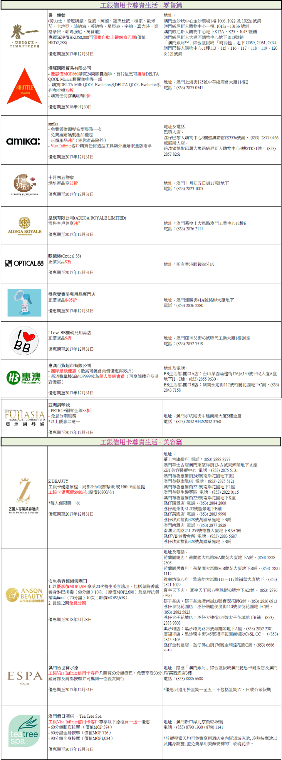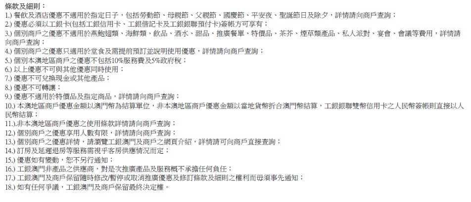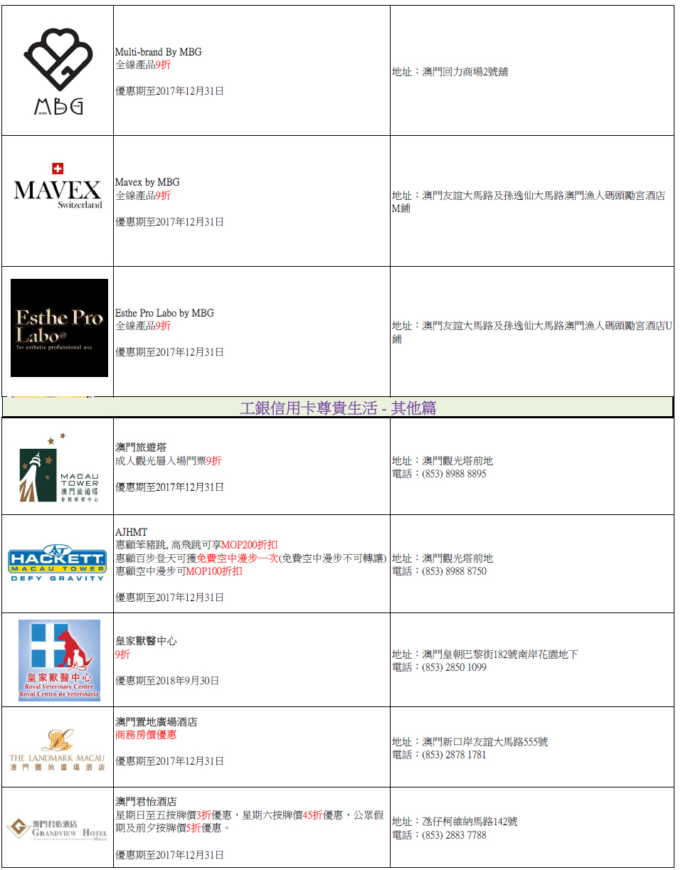 工銀信用卡尊貴生活全年商戶優惠