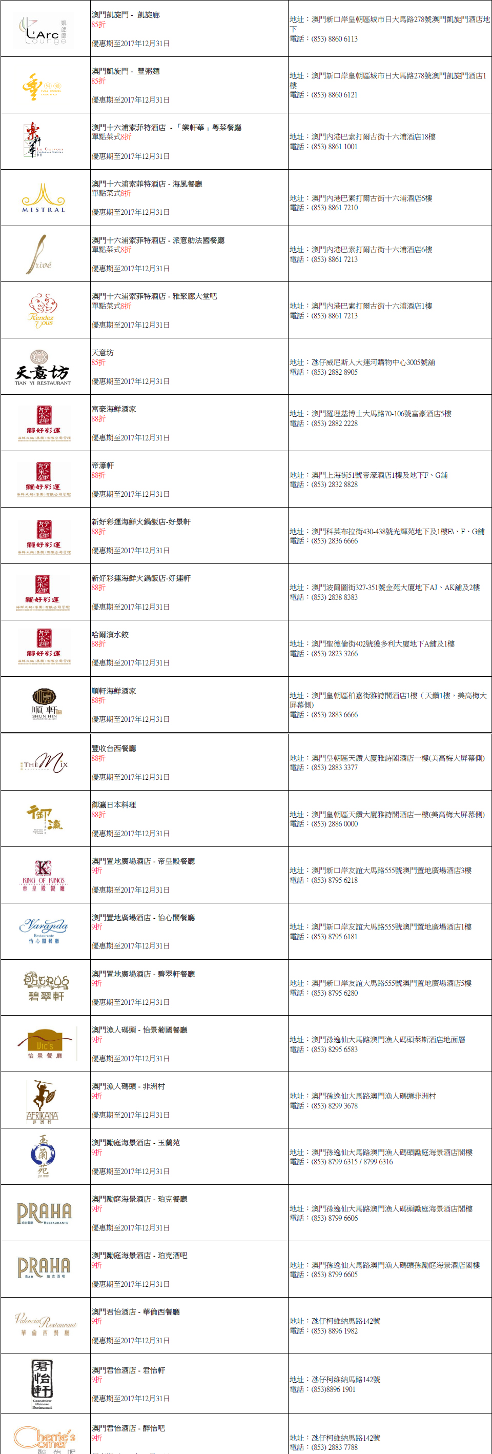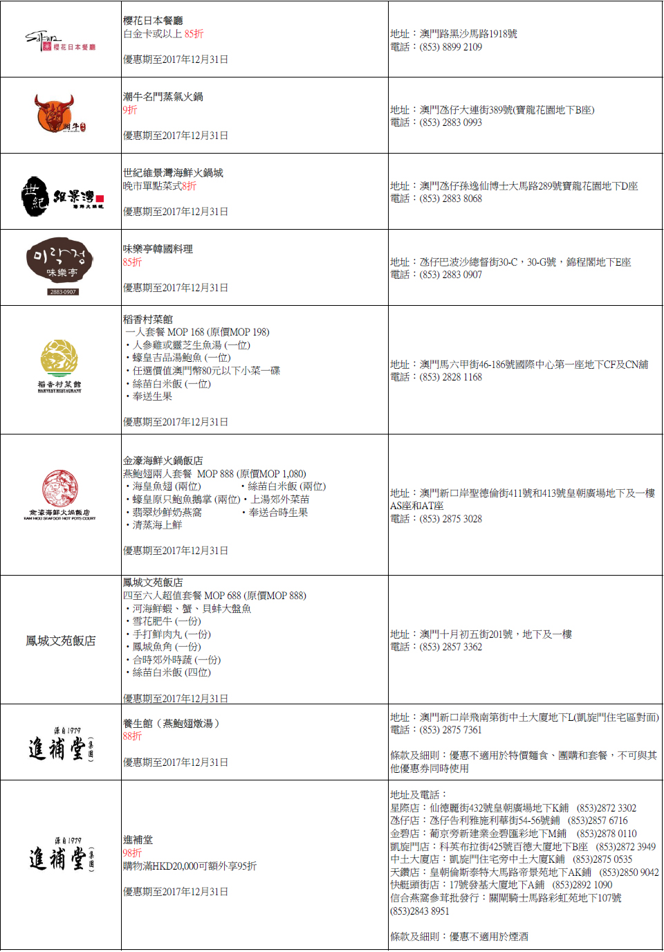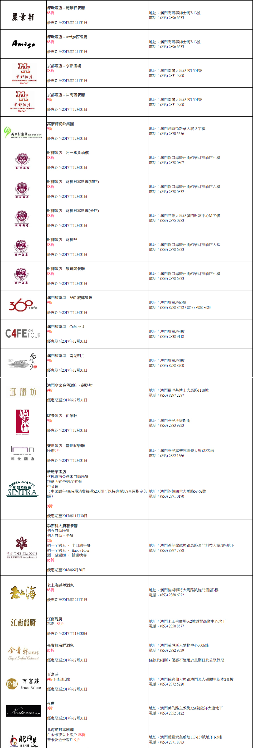 全年优惠商户