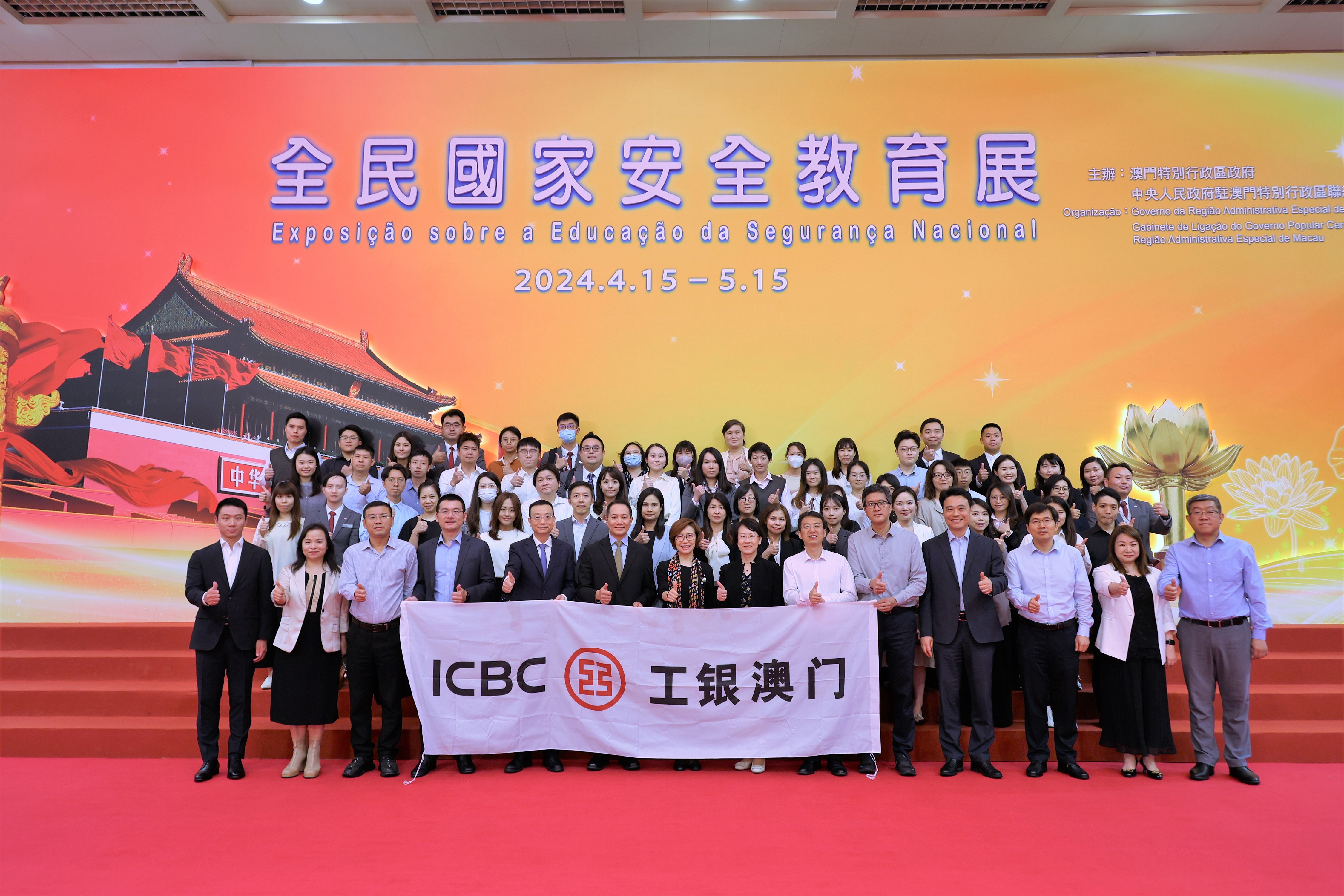 “全民國家安全教育展”日前於澳門綜藝館開幕,工銀澳門機構積極響應,組織一眾員工前往觀展,藉此加深員工對國家發展歷程和成就的了解,弘揚愛國愛澳精神。工銀澳門董事長高明、行政總裁牛建軍,中國工商銀行澳門分行總經理林孜,工銀澳門副行政總裁鄧洪、曹代福、黃獻軍、鄭斌、龔光慶,康委會會長、澳門立法會議員羅彩燕和康委會理事長黃敏賢,及各部門、分行員工代表出席。